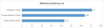 Сейчас же хочется поговорить о другом моменте: рост объёма кеш-памяти всегда сопровождается увеличением её задержек. Так и произошло на этот раз, однако справедливости ради нужно отметить, что рост латентности оказался совсем небольшим – с 38-39 до 41-42 тактов.