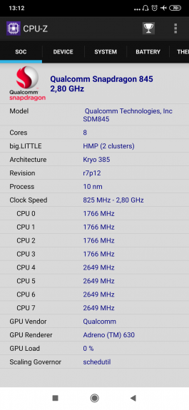 Xiaomi Mi MIX 3 – информация о начинке по данным приложения CPU Z